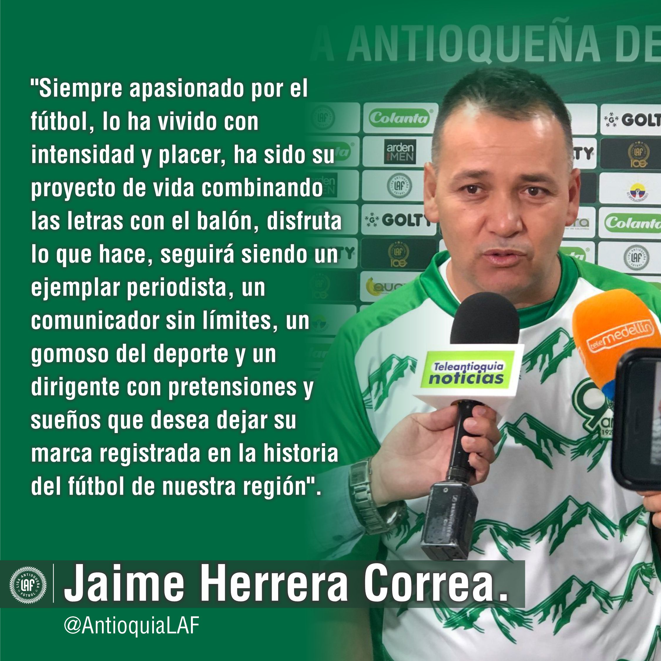 Luego de pasar 20 años por el periódico El Colombiano pasó a ser el asesor de comunicaciones de la gobernación de Antioquia en la región de Urabá, luego director de comunicaciones para nuestro departamento de los XXI Juegos Deportivos Nacionales del 2019. Jaime para poder hablar de fútbol con propiedad, se preparó como Director Técnico en la Academia CENEF de Hugo Gallego, realizó una especialización en Derechos Humanos y Ciencias Políticas y la otra de Gerencia Deportiva, ésta última le abrió las puertas en el proyecto para llegar a la Liga Antioqueña de Fútbol donde hoy es su presidente. En su trayectoria por la Acord Antioquia llevó la propuesta para el nacimiento de la Copa Cipa, Copa Gatorade, Copa Direct by, Copa Metro y ahora Copa Acord Antioquia, durante 20 años sin parar hasta la pandemia se ha mantenido este importante festival de escuelas de fútbol que se ha realizado a nivel departamental.