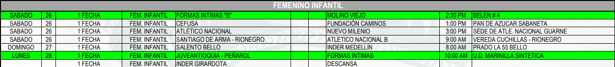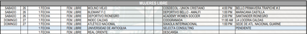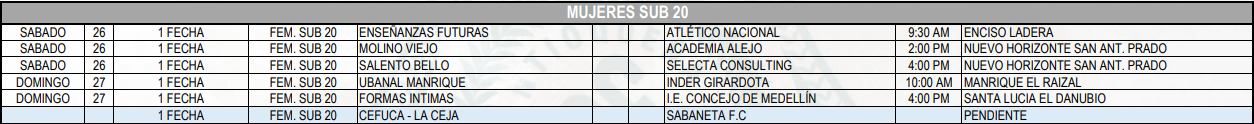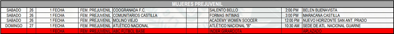 Programación Torneos Departamentales de mujeres – Valle de Aburrá: